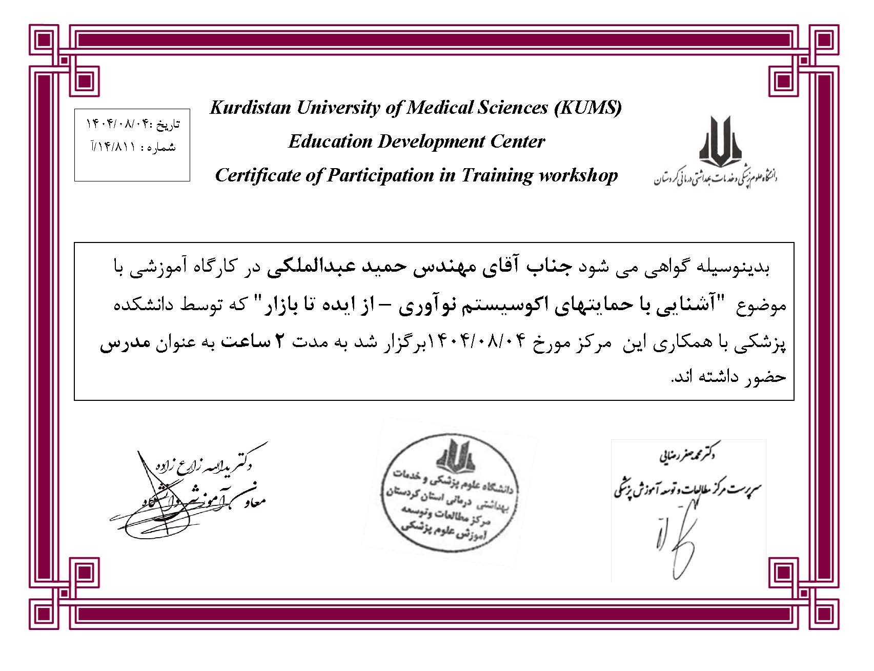 جناب آقای دکتر حمید عبدالملکی- مدرس