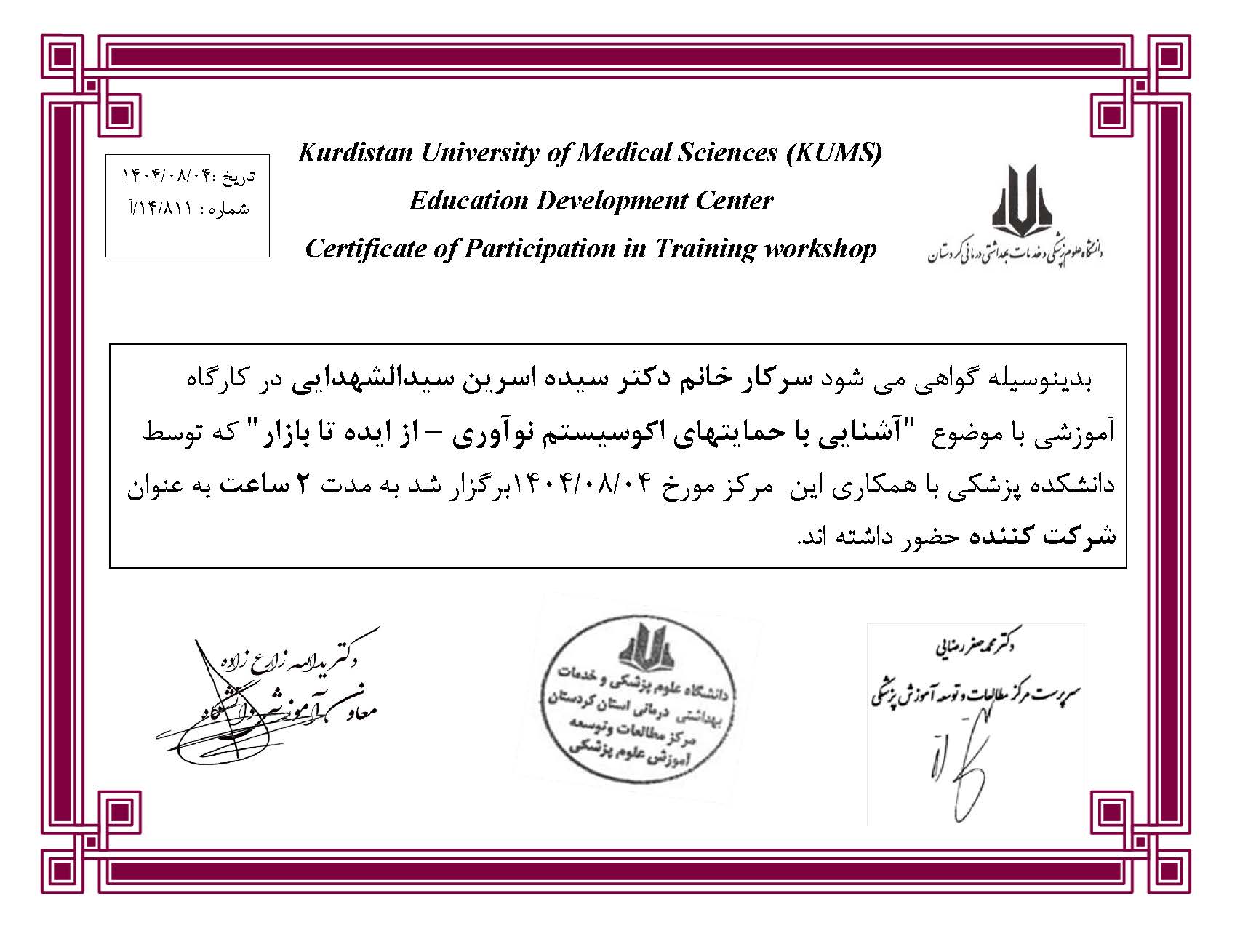سرکار خانم دکتر سیده اسرین سیدالشهدایی