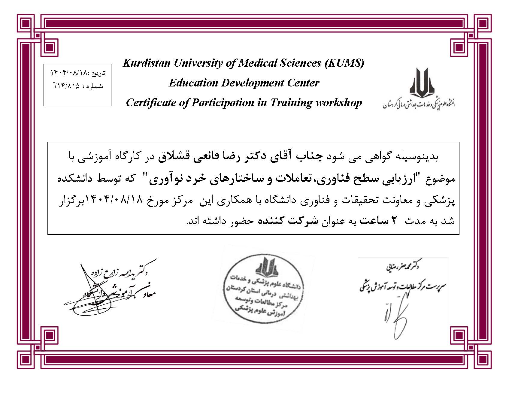 جناب آقای دکتر رضا قانعی قشلاق