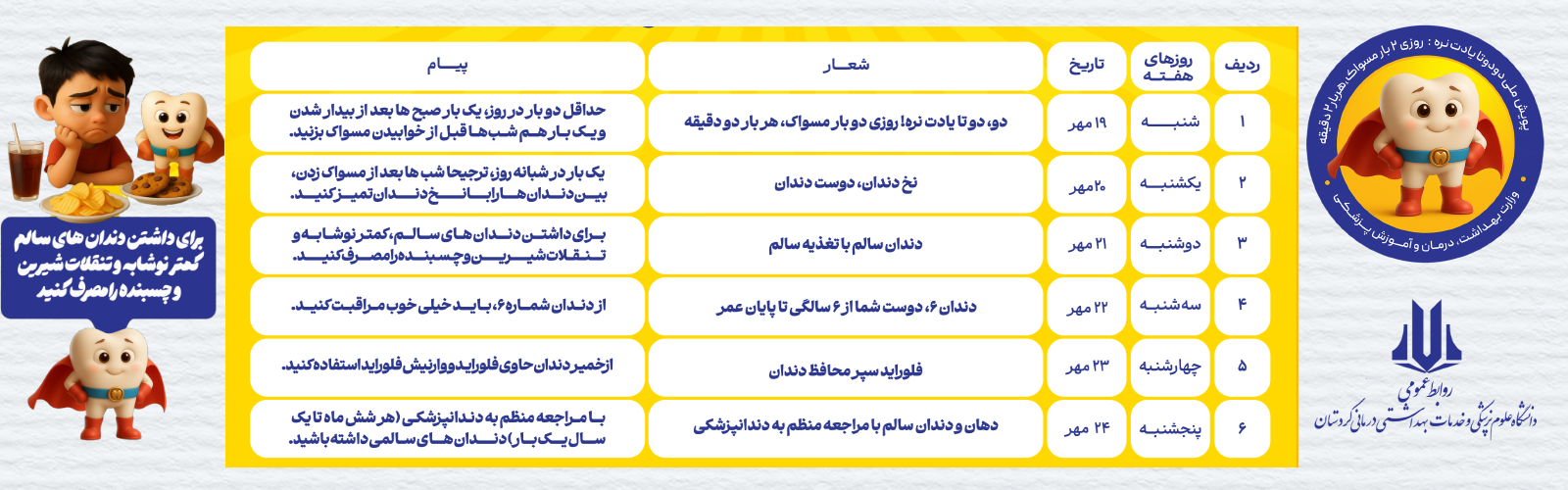 جشن پویش سلامت دهان و دندان بمناسبت گرامیداشت پویش دو دوتا یادت نره با حضور جمعی از مسئولین دانشگاه علوم پزشکی، اداره کل آموزش وپرورش استان کردستان در مدرسه ابتدایی صداقت (عباس آباد) برگزار شد.