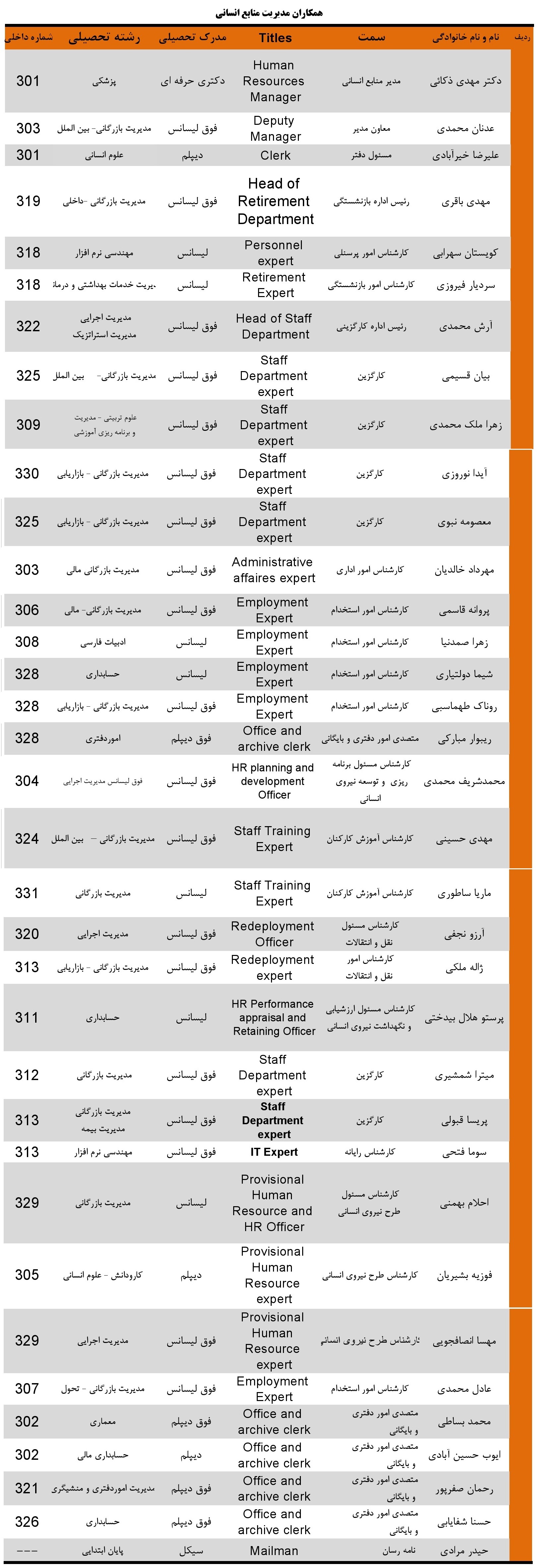 لیست همکاران شاغل در مدیریت منابع انسانی: